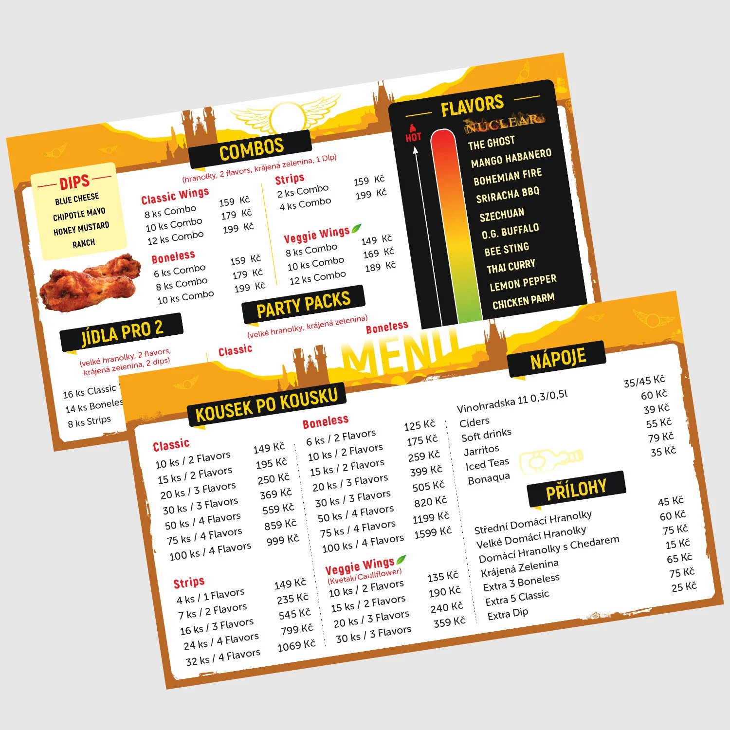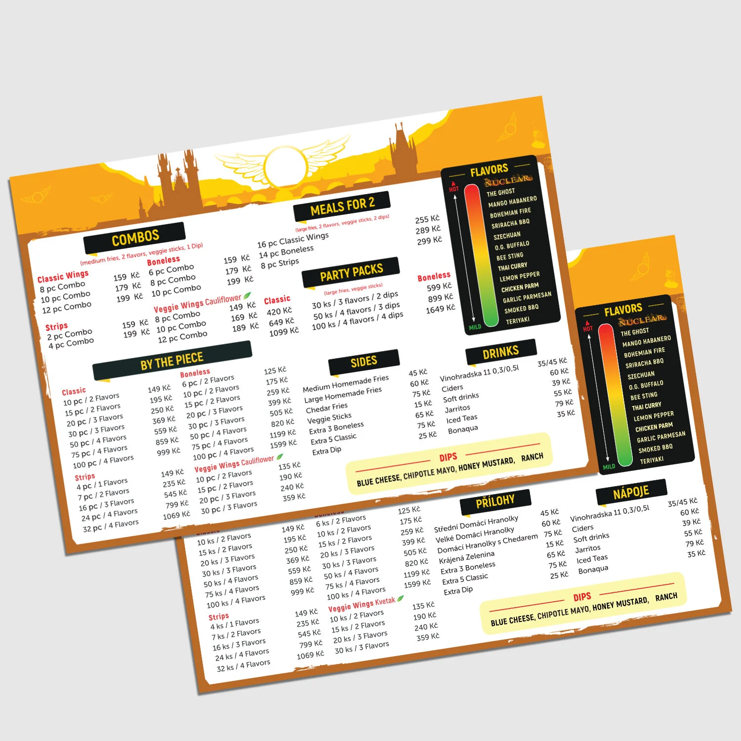 The paper menu needed to be A4 size with one side in English and the other in Czech.